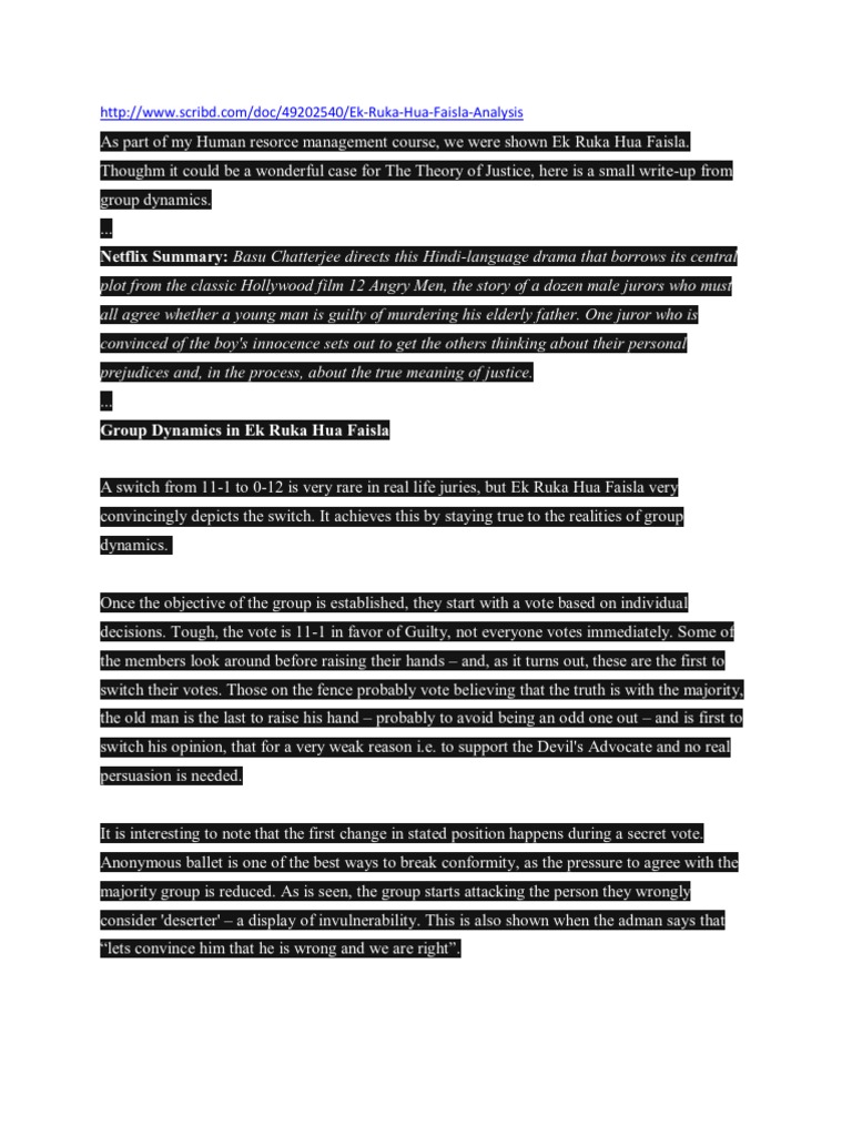 Aug 06, · This paper intends to discuss the movie and examines how group effort assisted jury in finding a prudent decision. The story revolves around twelve men who are assigned a task to find the truth of an alleged crime. These men are members of a jury and have different backgrounds October 2, Movie Paper (12 Angry Men) In the Movie, 12 Angry Men, 12 jurors were tasked with finding a young man guilty or not-guilty of murdering his own father. In order for the men to fulfill their duty as jurors, they had to come to a consensus of whether the young man was guilty or not by working together, as a group, in order to analyze the trials evidence and testimonies, to then come to an 12 Angry Men. In all criminal cases presented in the courts of the United States, a defendant is presumed innocent until proven guilty beyond reasonable doubt. The law requires the jury to release the defendant unless it is fully convinced of the defendant’s guilt. Many times it may be difficult for a jury to come to such a significant conclusion. This is clearly evident in the movie 12 Angry blogger.comted Reading Time: 4 mins